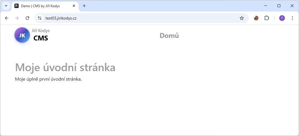 Po znovunačtení webu se vedle loga zobrazí navigace s položkou Domů.